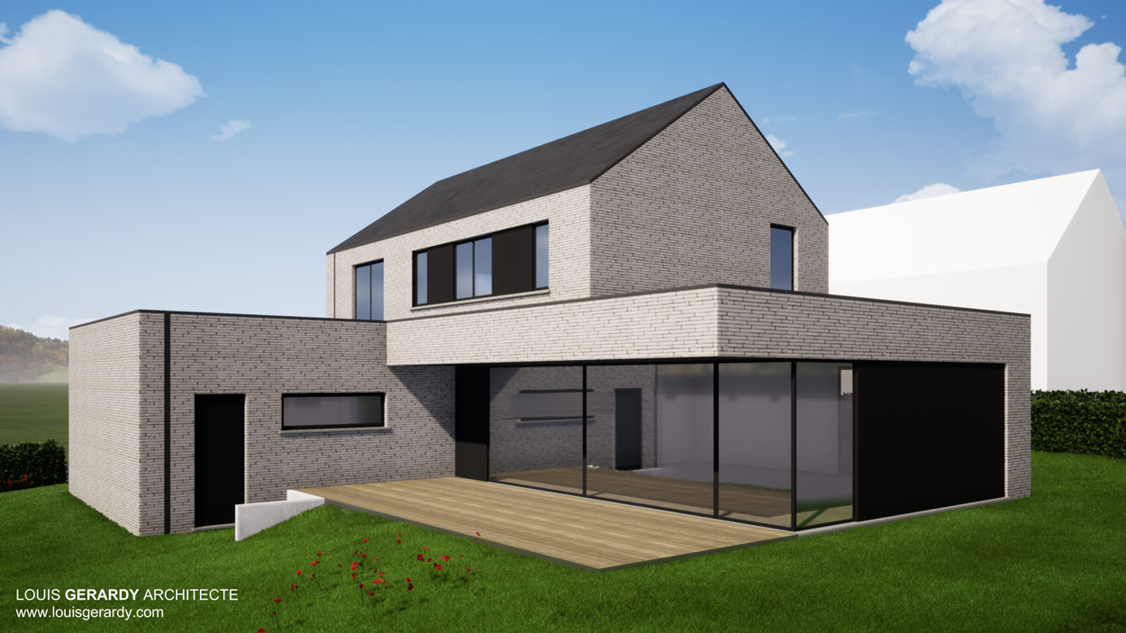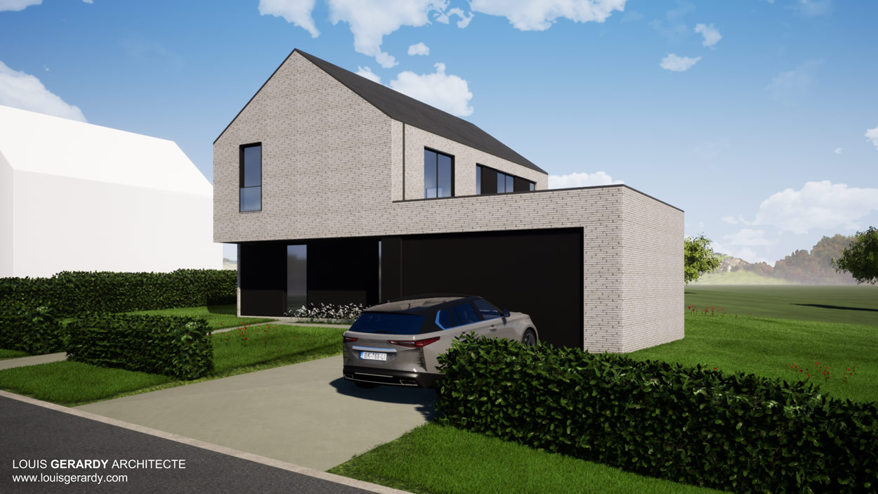 A proximité immédiate de toutes les facilités et des connexions autoroutières, agréable villa offrant 200 m² habitables (226 m² construits) sur un terrain de +/- 8a (face S-E).